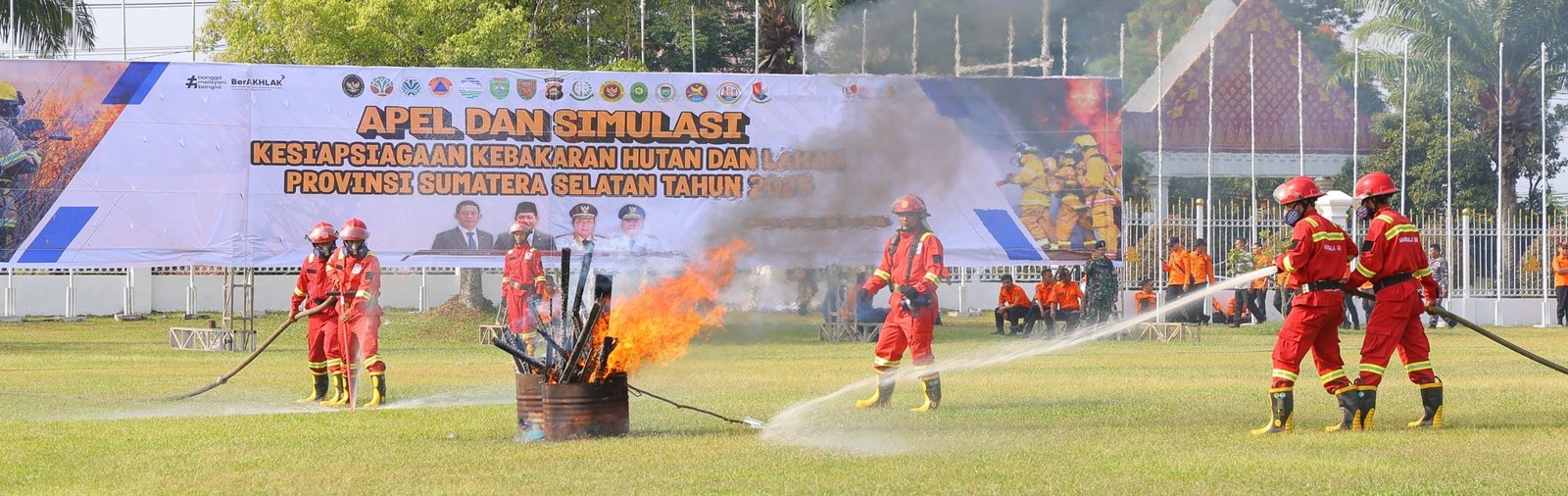 Dengan dipimpin langsung Menteri Lingkungan Hidup Hanif Faisol Nurofiq, Walikota Palembang, Ratu Dewa secara langsung ikuti kegiatan Apel Siaga Kebakaran Hutan Kebun dan Lahan (Karhutlah) yang digelar di Griya Agung Palembang, Selasa (29/07).