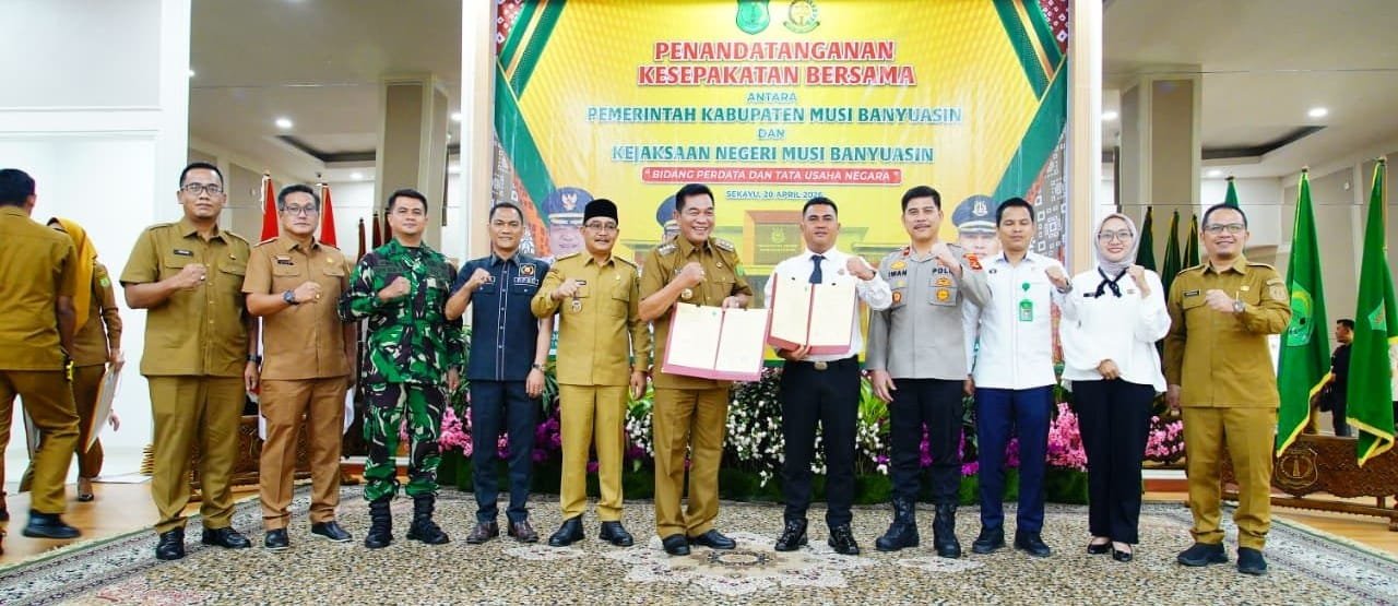 Perkuat tata kelola pemerintahan yang baik dan aman secara hukum, Pemerintah Kabupaten Musi Banyuasin (Pemkab Muba) bersama Kejaksaan Negeri Muba menandatangani Naskah Kesepakatan Bersama Bidang Perdata dan Tata Usaha Negara. Penandatanganan digelar pada Senin (20/4/2025) di Guest House Griya Bumi Serasan Sekate.