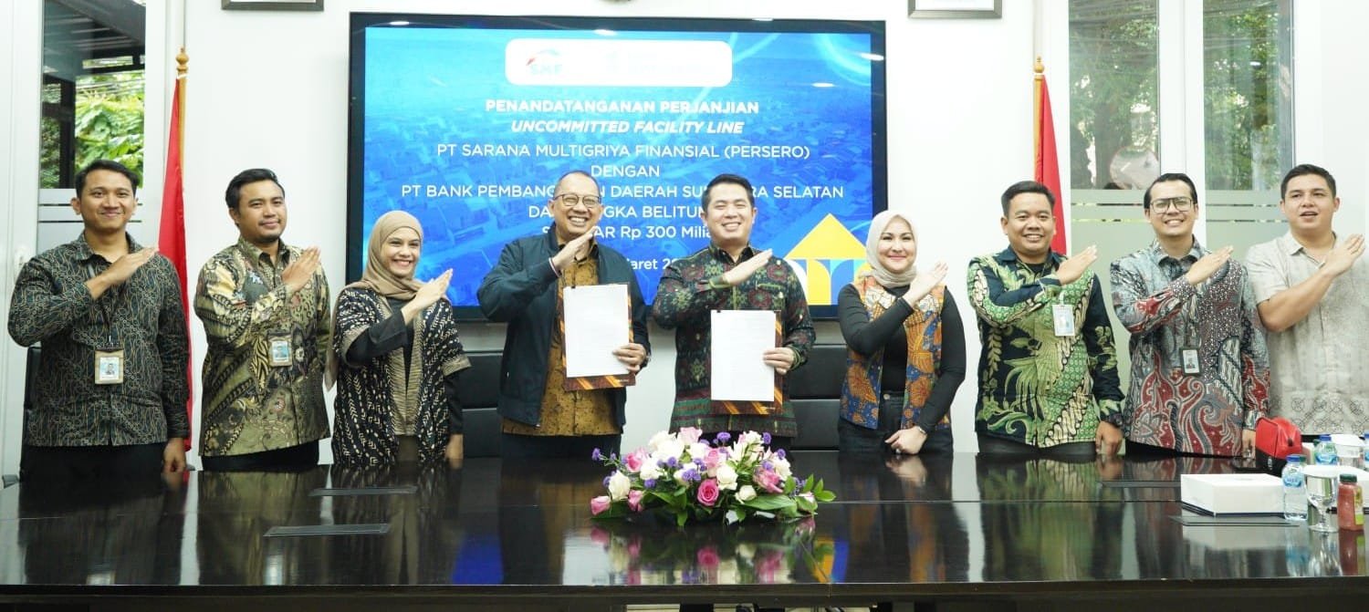 Bank Sumsel Babel terus mempertegas komitmennya dalam mendukung penguatan sektor perumahan melalui penandatanganan kerja sama Uncommitted Facility Line bersama PT Sarana Multigriya Finansial (Persero) dengan nilai sebesar Rp300 miliar.