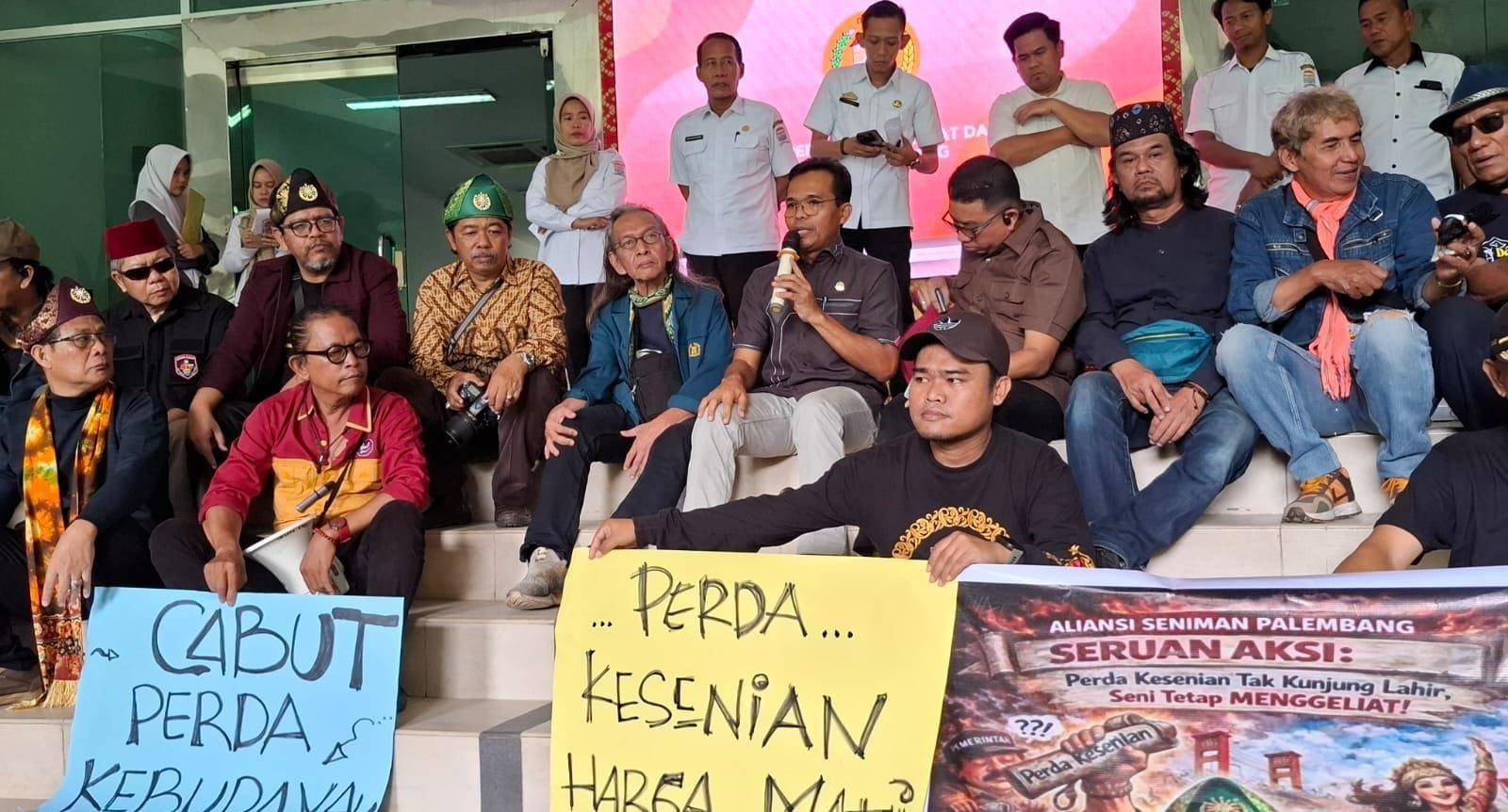 “Dari hasil diskusi, kami melihat memang perjuangan 15 tahun ini perlu menjadi perhatian utama. Perda Pemajuan Kesenian sangat penting dan kami mendukung untuk segera disahkan tahun ini,” ujar Jumono usai menerima perwakilan seniman saat aksi damai yang digelar di depan Gedung DPRD, Rabu (21/1/2026).