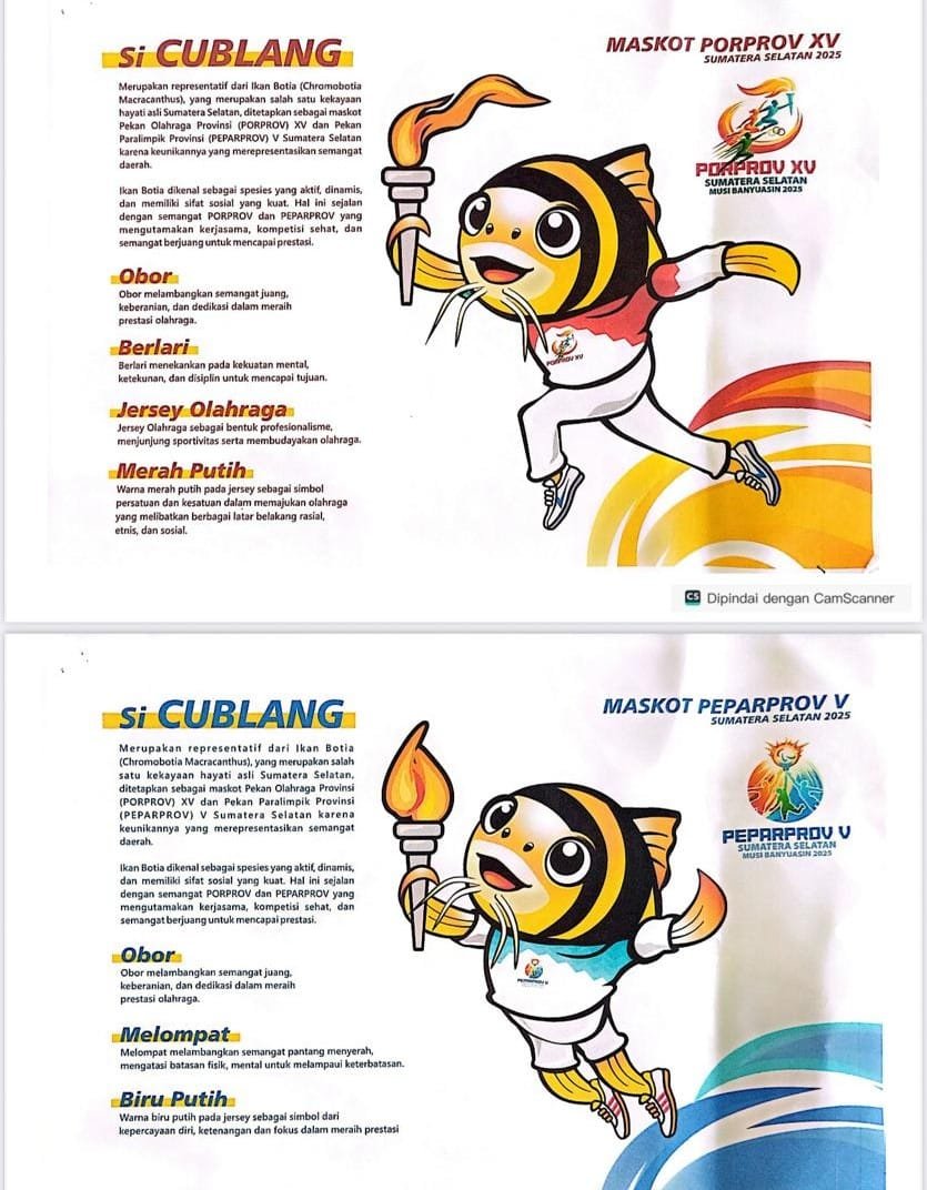Kepala Dinas Kominfo Musi Banyuasin, Herryandi Sinulingga, menjelaskan bahwa maskot Si Cublang merepresentasikan ikan Botia (Chromobotia macracanthus), yang merupakan salah satu kekayaan hayati khas Sumsel. Karakter ini dipilih karena mencerminkan semangat perjuangan, kebersamaan, dan sportivitas yang menjadi roh utama penyelenggaraan Porprov dan Peparprov.
