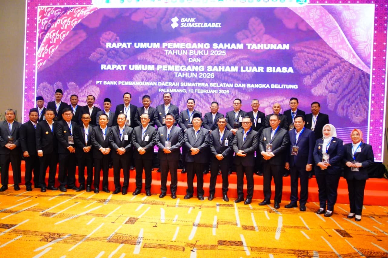 Bupati Musi Banyuasin (Muba) H M Toha Tohet SH menghadiri Rapat Umum Pemegang Saham (RUPS) Tahunan Tahun Buku 2025 dan Rapat Umum Pemegang Saham Luar Biasa (RUPSLB) Tahun 2026 PT Bank Pembangunan Daerah Sumatera Selatan dan Bangka Belitung (Bank Sumsel Babel), yang digelar di Hotel Novotel Palembang, Kamis (12/2/2026).
