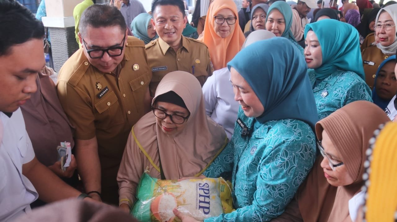 Ketua TP PKK Dewi Sastrani mengapresiasi kegiatan pasar murah ini.