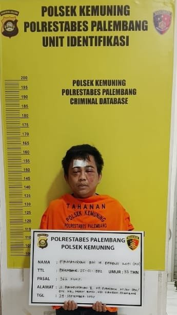 Seorang pria diamankan petugas Reskrim Polsek Kemuning Palembang, setelah nyaris babak belur jadi amukan warga lantaran kepergok mencuri ponsel milik seorang karyawan toko kue, Selasa (30/09/2025).