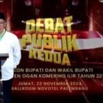 Debat Kedua, JADI Tampil Meyakinkan Untuk Memimpin OKIPolitik|Sabtu, 23 November 2024oleh soimahPalembang, Focuskini Pasangan calon Bupati dan Wakil Bupati Ogan Komering Ilir (OKI)