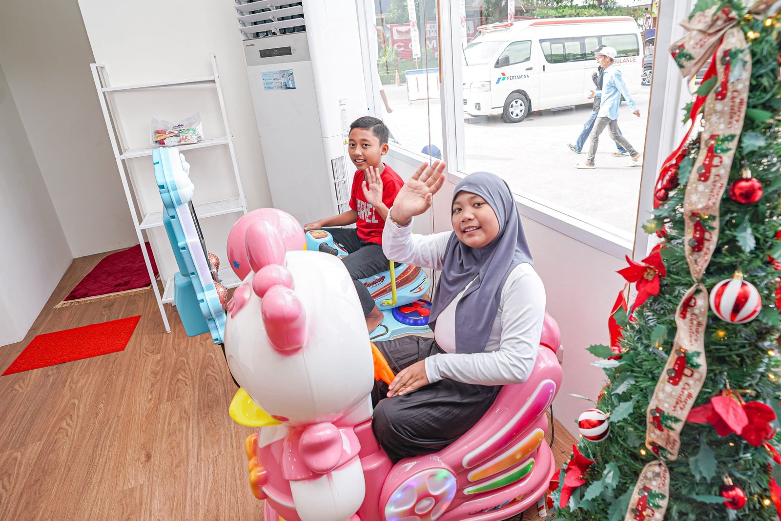 Tak hanya memanfaatkan fasilitas bermain anak, Amri juga mencoba layanan lain yang tersedia di Serambi MyPertamina KM 57.