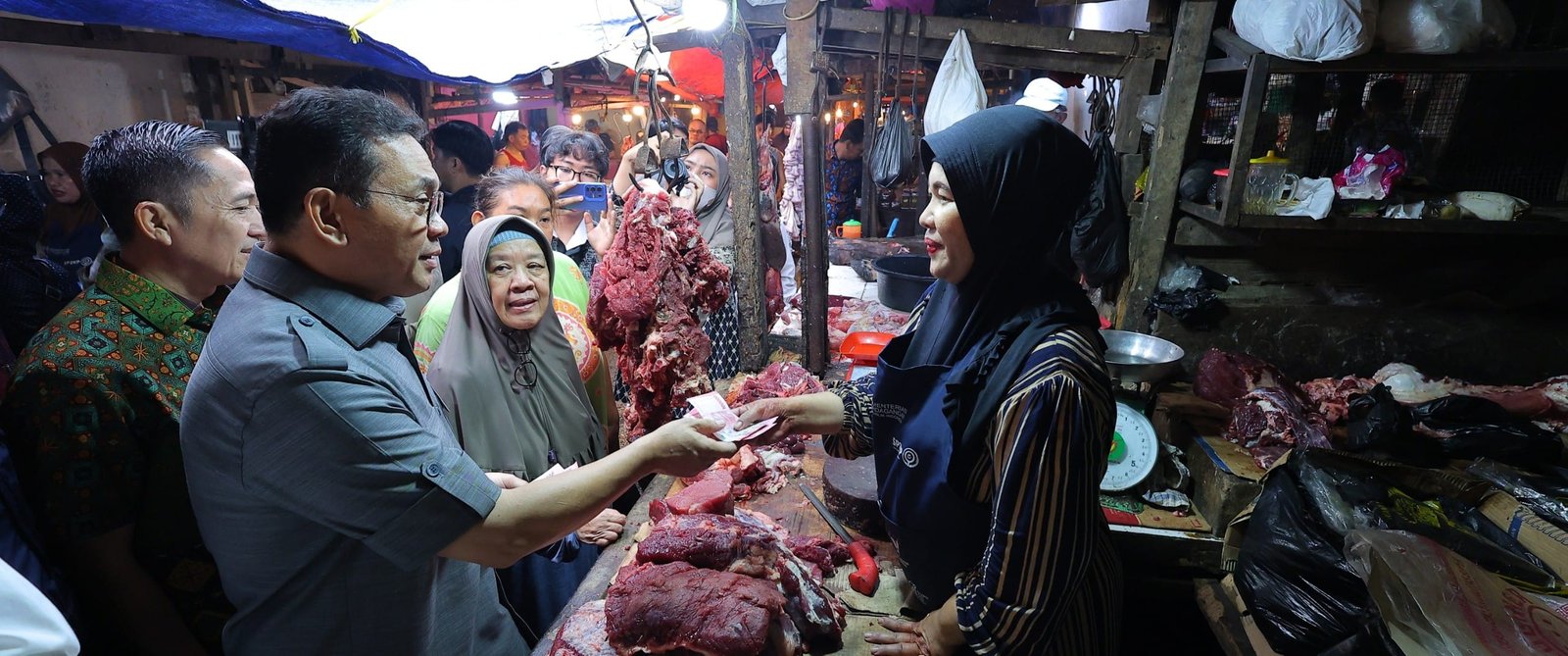 Menteri Perdagangan Budi Santoso bersama Wali Kota Ratu Dewa berkeliling pasar, meninjau langsung sejumlah lapak pedagang, serta berdialog untuk menyerap aspirasi dan mengetahui kondisi harga terkini.