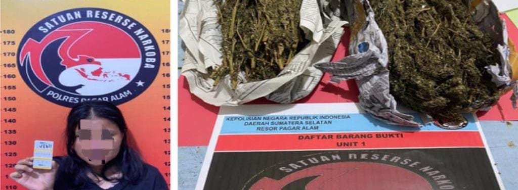 “Benar, Satresnarkoba Polres Pagar alam telah mengamankan seorang perempuan yang diduga sebagai pengedar ganja. Dari hasil pemeriksaan, barang bukti yang ditemukan mencapai setengah kilogram ganja kering siap edar,” terang Kasat Narkoba Iptu Doris Pidriandi.