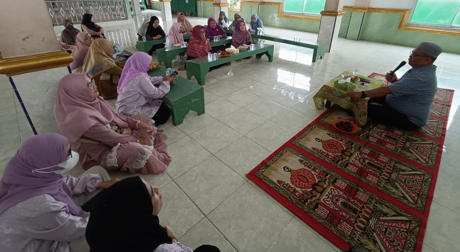 Ustad dan ustazah Tk/TPA Badan Komunikasi Remaja Masjid Indonesia (BKPRMI) se-Kecamatan Kalidoni mengikuti pembinaan Dewan Pembina Kecamatan (DPK) Kalidoni di Masjid Akbar Jalan RW Monginsidi Kalidoni Palembang, Minggu (21/12/2025).